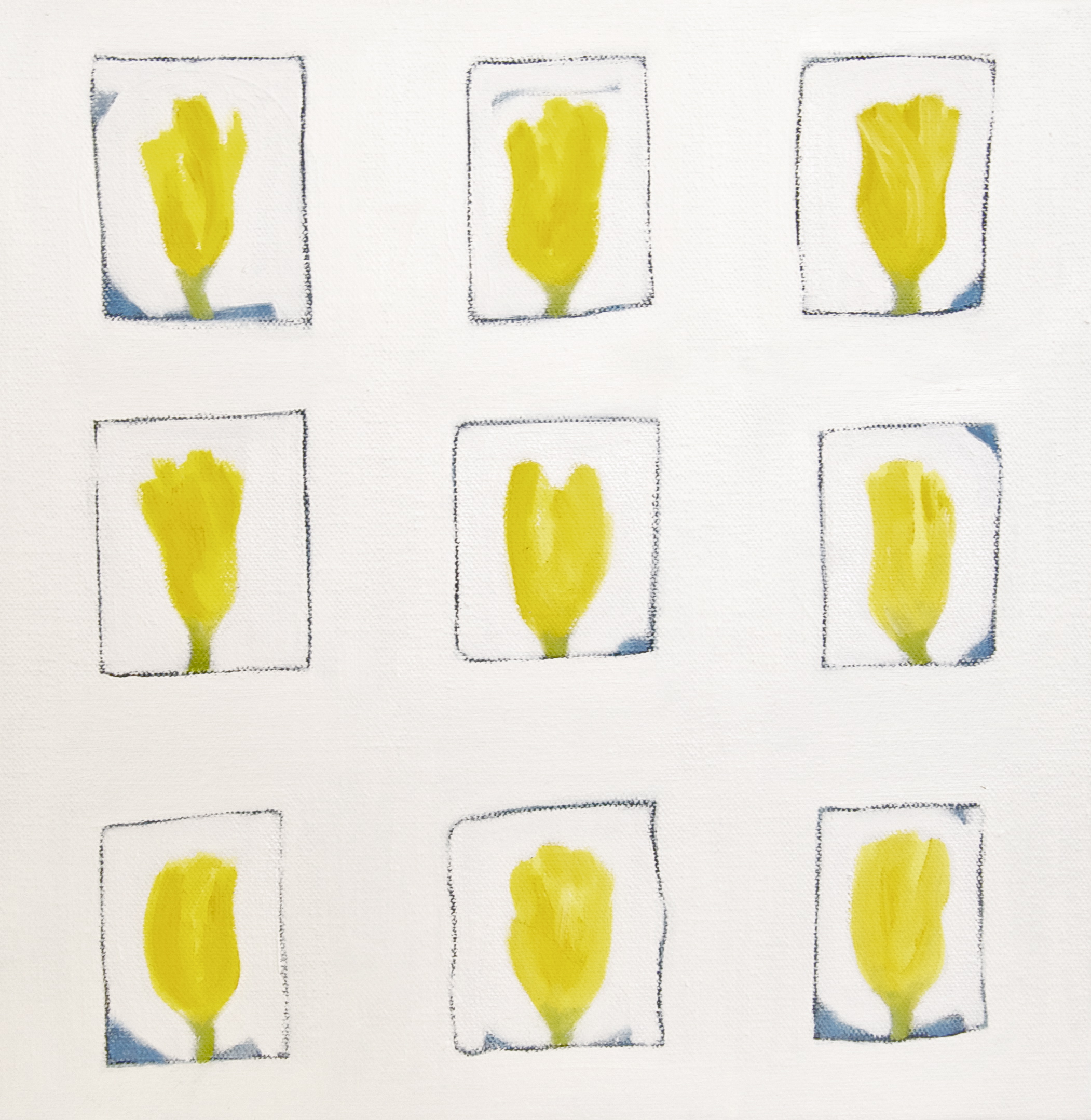 9 YELLOW TULIPS oil and oil bar on canvas 12" x 12"