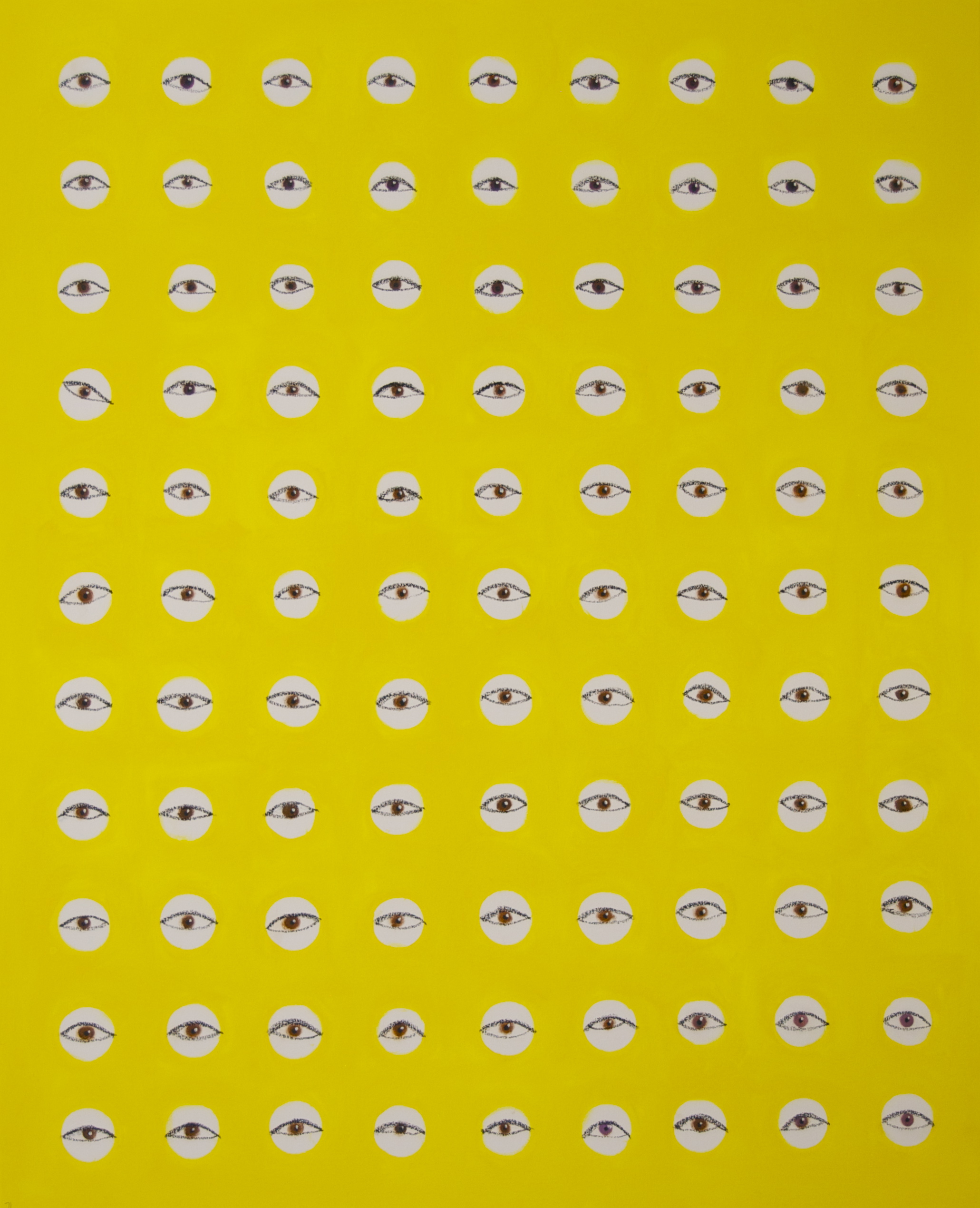 99 EYES ON YELLOW SOLD oil and oil bar on canvas 54" x 44"